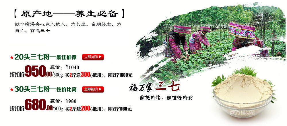 100%正宗文山三七,品质保障,假一赔十;服务热线:400-800-3250 版权所有:文山福万家